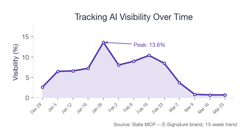 Before: A marketing automation platform tracked "AI mentions" as a single monthly number. They knew they had "about 200 citations" but had no idea which pages drove them or whether the number was growing.
