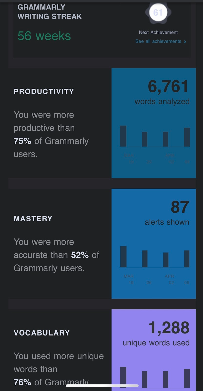 A good example here would be Grammarly. They are great at using data across marketing channels. They customize their weekly email to the writing activity, allowing them to send targeted resources that help users learn and evolve as a writer.