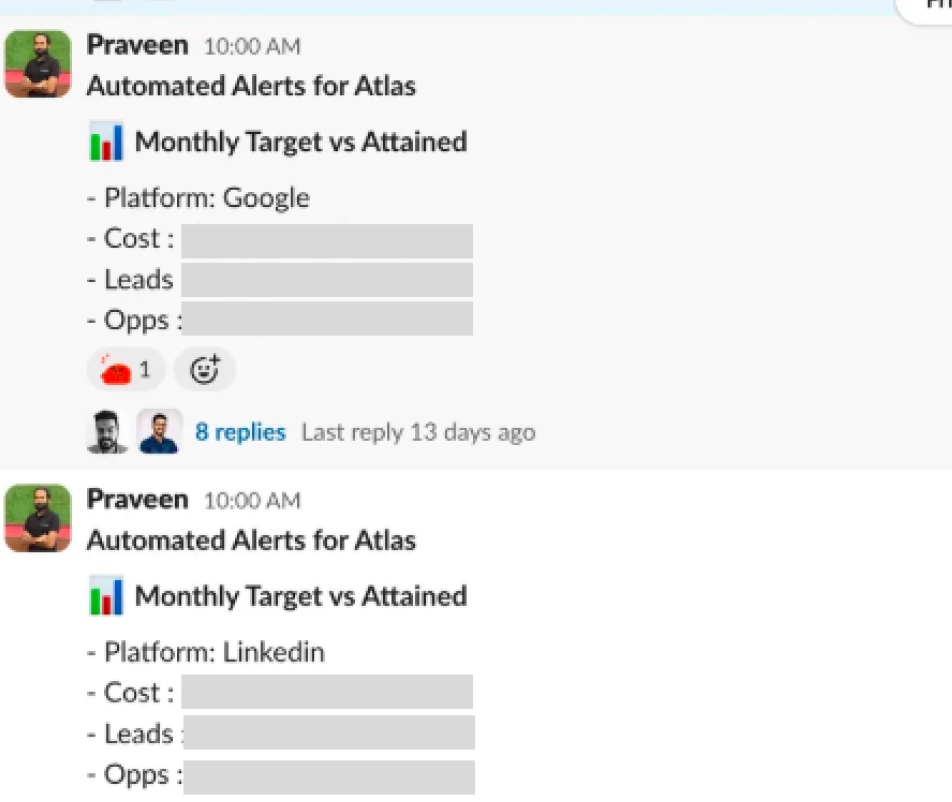 Shared dashboards gave everyone the same view of campaign performance. Automated Slack alerts tracked daily spend against targets.