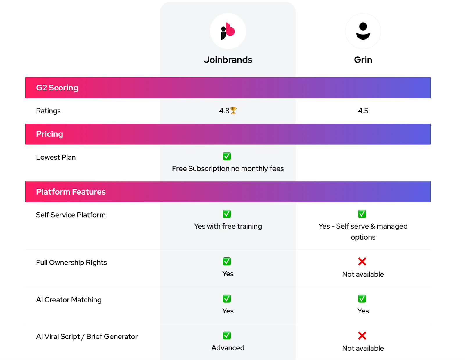 JoinBrands is a UGC and influencer marketing platform operating on subscription and one-time pricing models. Each customer brings in approximately $2,500 over their lifetime.