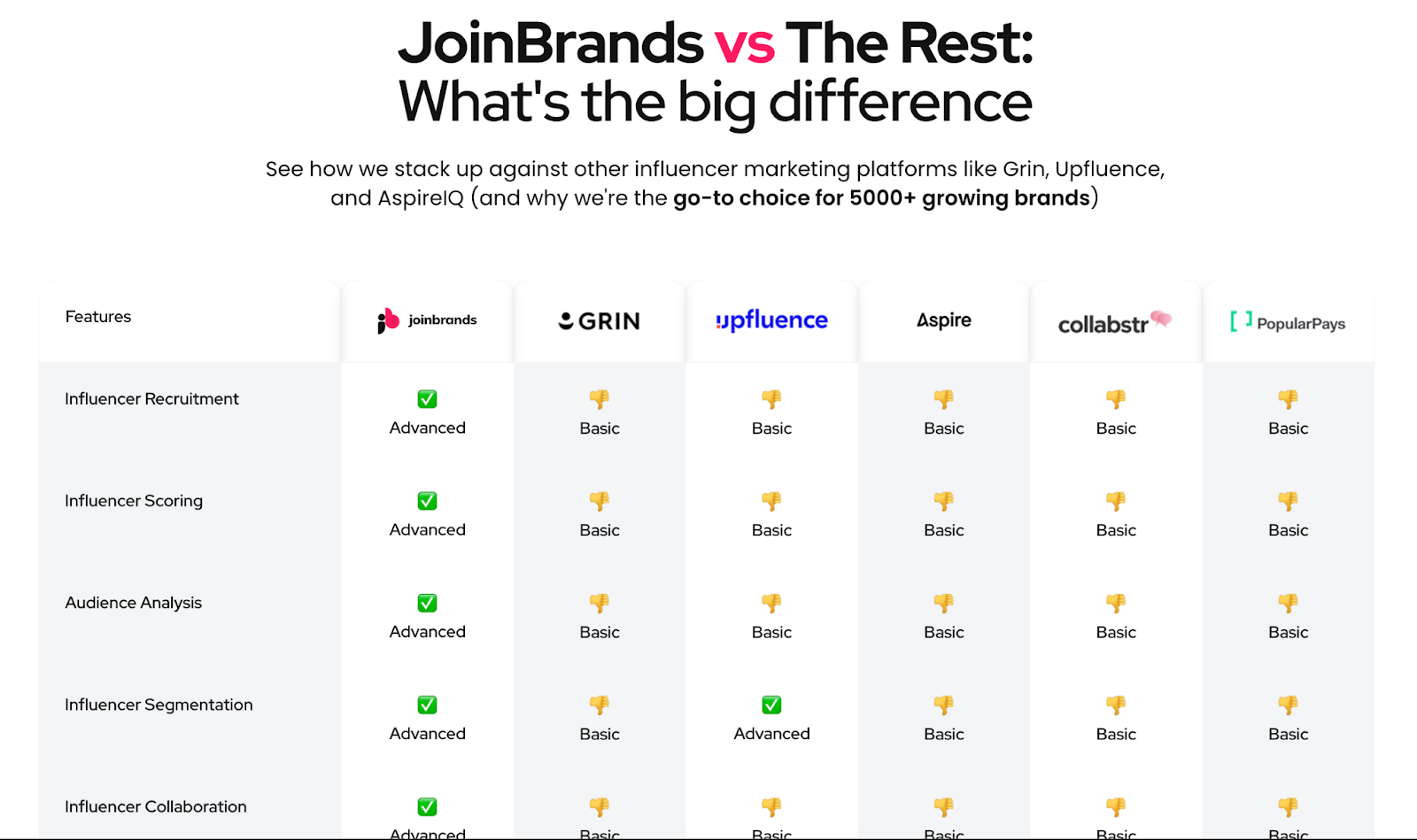 For competitor campaigns, we initially started with one landing page for all competitors. When conversion rates stayed low, we realized the problem: people comparing JoinBrands to a specific competitor wanted to see why JoinBrands was better than that competitor.