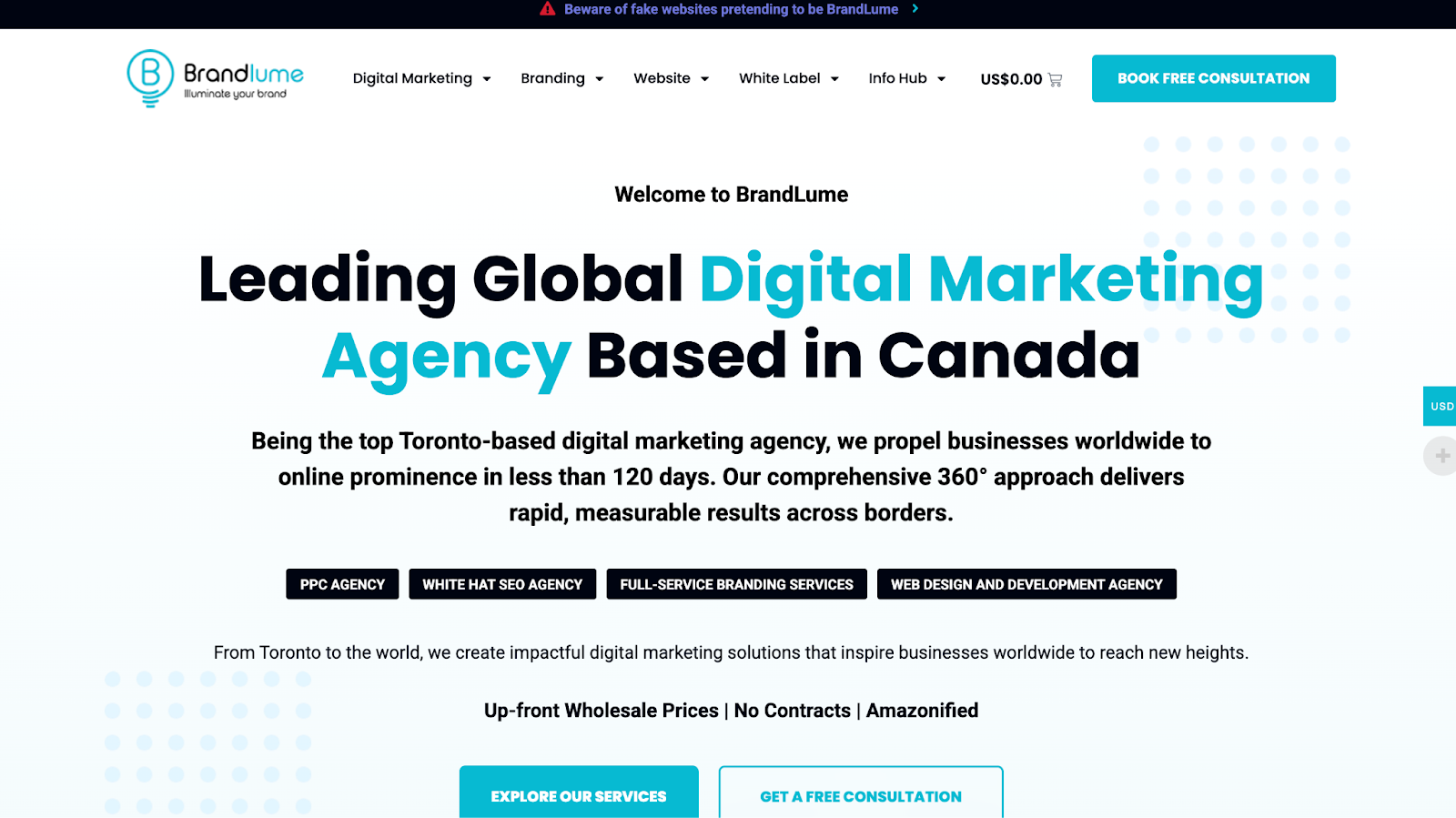 BrandLume leverages an "Amazonified" digital marketing model, offering upfront wholesale pricing with transparent service details and zero long-term contract requirements.