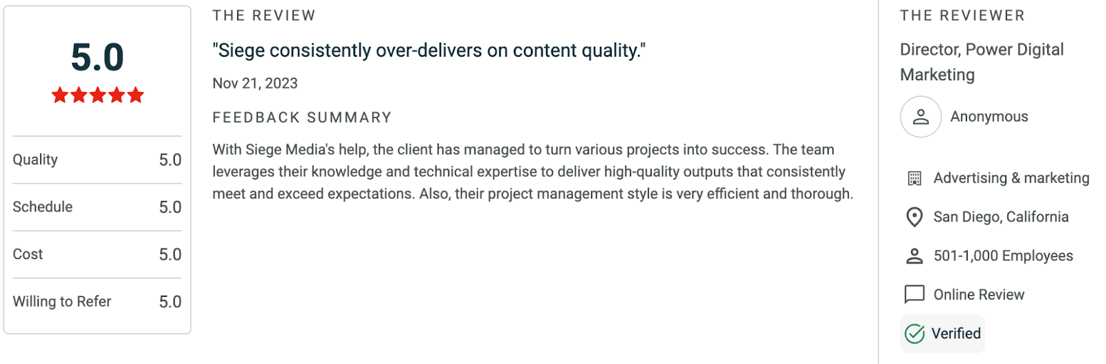 Siege Media is rated 4.8/5 on Clutch.