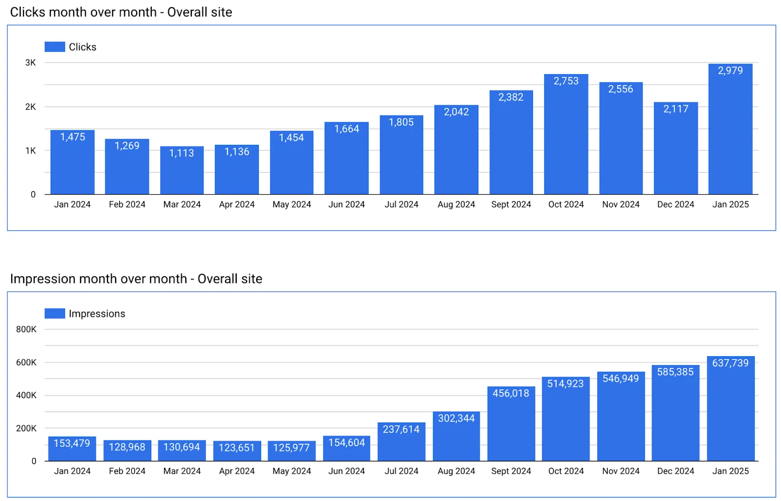 Monthly clicks increased from 1,300 to 8,000 (over 500% growth)