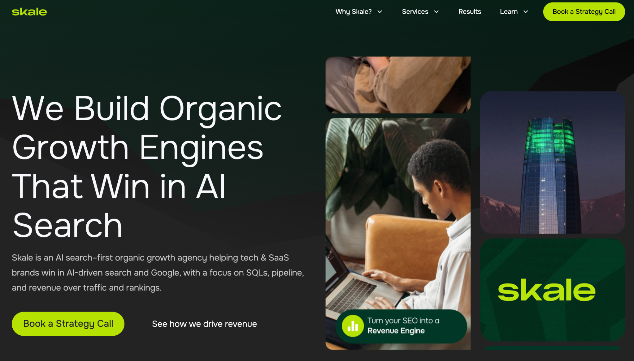 Skale is recognized as a specialist AI Search growth agency for SaaS brands, with bespoke engagements built around measurable visibility and pipeline outcomes.